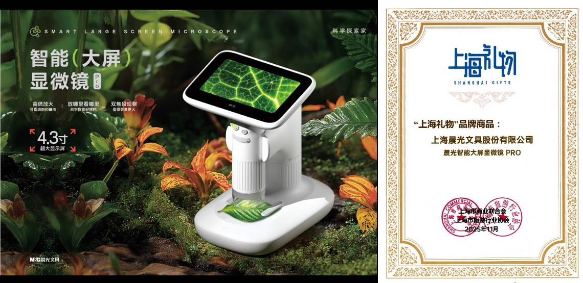 本次入选“上海礼物”的文具文创产品,都是晨光精准捕捉到消费者对“黑科技、高颜值、高质价比”文具的多重期待而推出的产品。比如在新型智能文具受到越来越多学生和家长欢迎的当下,晨光就推出适合6-12岁儿童的科学探索与观察的晨光智能大屏显微镜pro,不仅打破传统显微镜的局限,兼具4.3寸超大高清彩屏,还采用双焦距设计,拥有宽视野和微观双模式,更能综合放大400倍,让观察更清晰舒适。