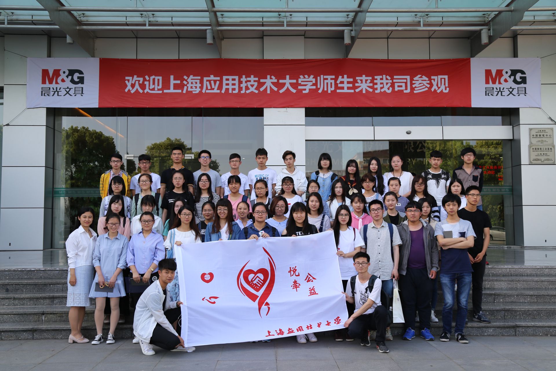 2017年5月10日,上海应用技术大学化学工程专业的60名师生前往晨光文具参观学习,开展大学生课外实践活动,参观制笔工艺流程,感受匠心精神,与大咖面对面交流,制作创意手帐学习时间管理,体会不一样的工程师文化。
