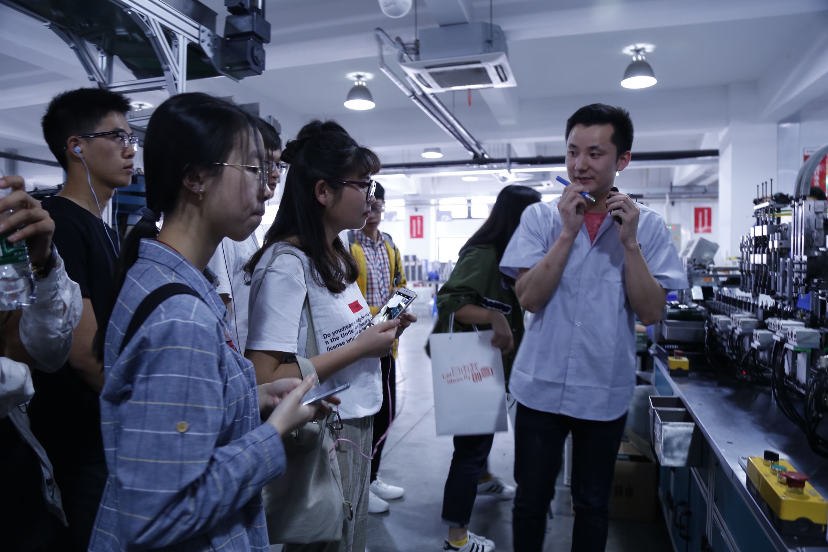 在工作人员的带领下,上海应用技术大学的师生们首先参观了晨光文具位于青村园区的制笔二厂自动装配车间和注塑车间、全自动化立体仓库和光明园区的笔头厂、晨光生活馆。