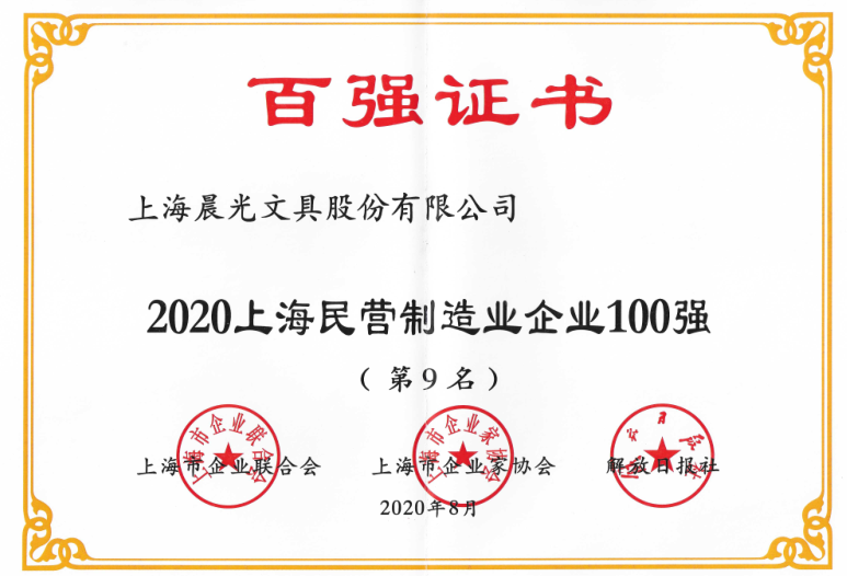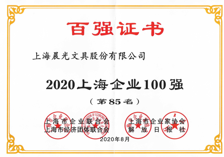 2020上海百强企业榜发布,晨光文具再登五项榜单!